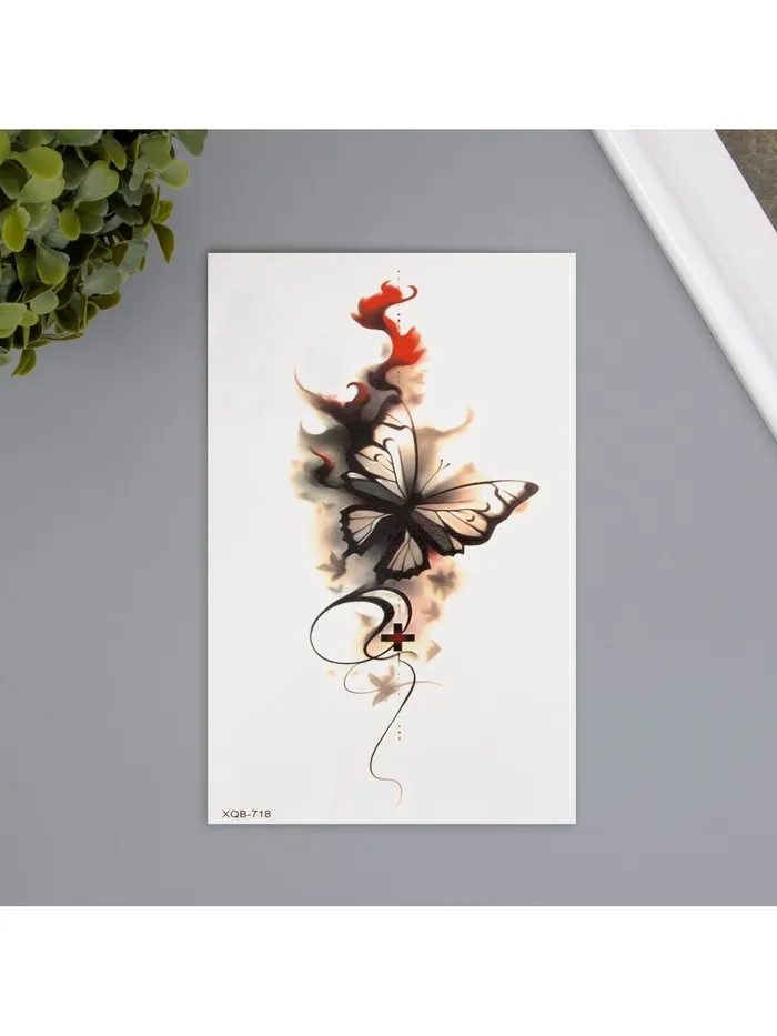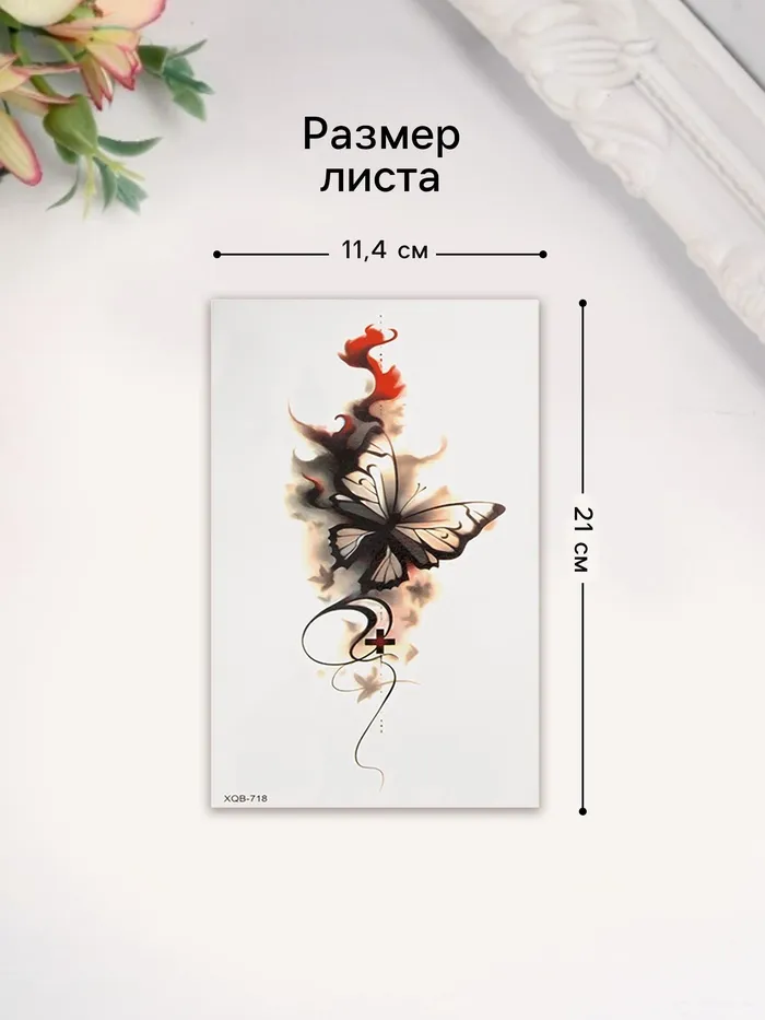 Переводная тату на тело цветная «Бабочка в чернилах», 11.4×21 см — Характеристики