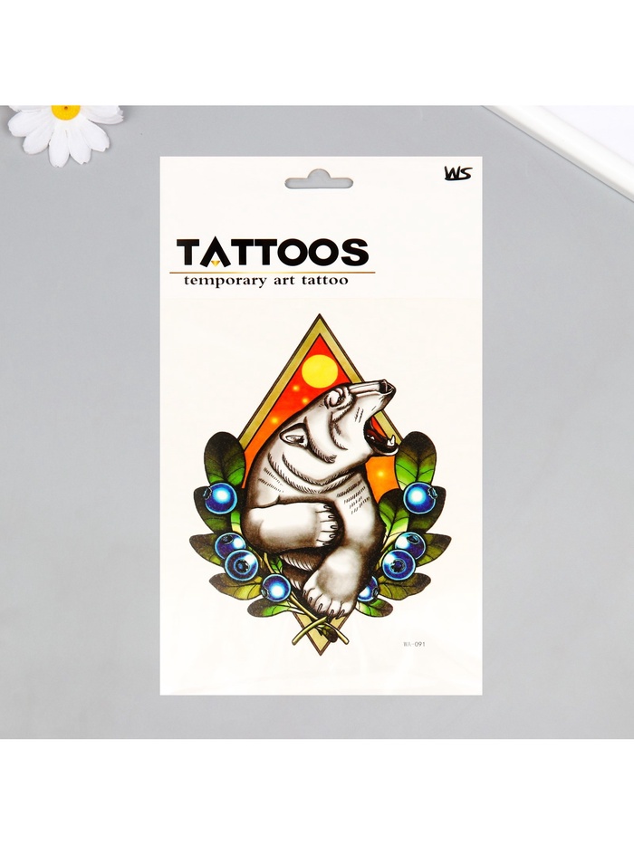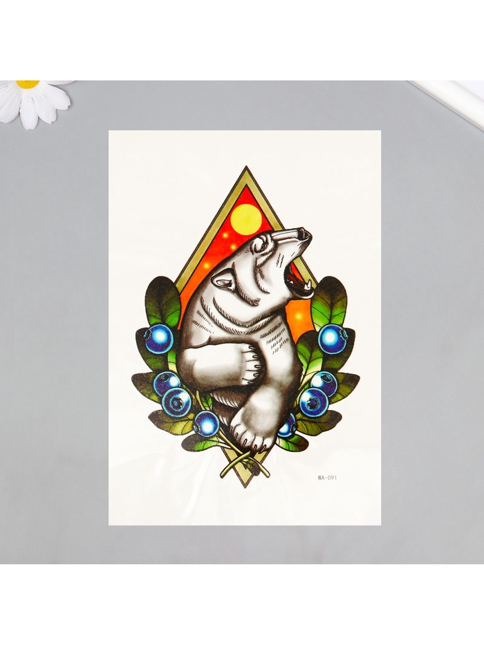Переводная тату на тело цветная «Белый медведь в ягодах», 26.2×14.5 см — Характеристики