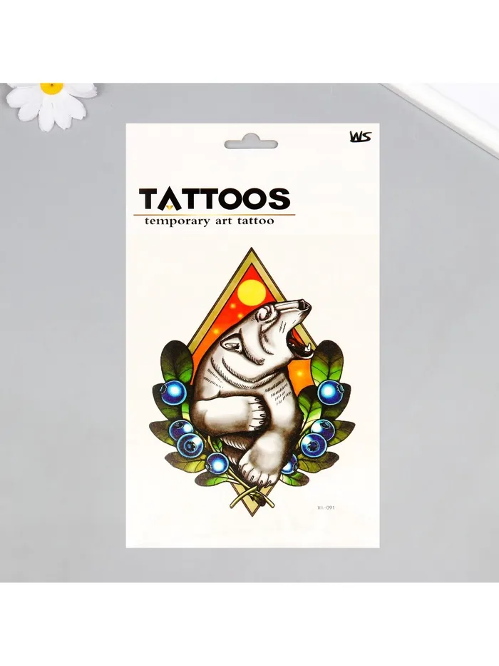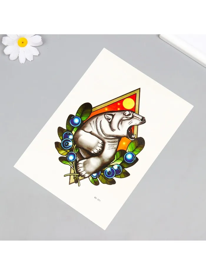 - Яркий и универсальный дизайн: Временные татуировки предлагают разнообразные красочные рисунки, которые идеально вписываются в любой образ. Тематика животного мира с изображением полярного медведя придает ей свежесть и креативность.