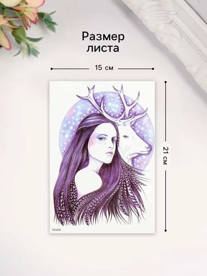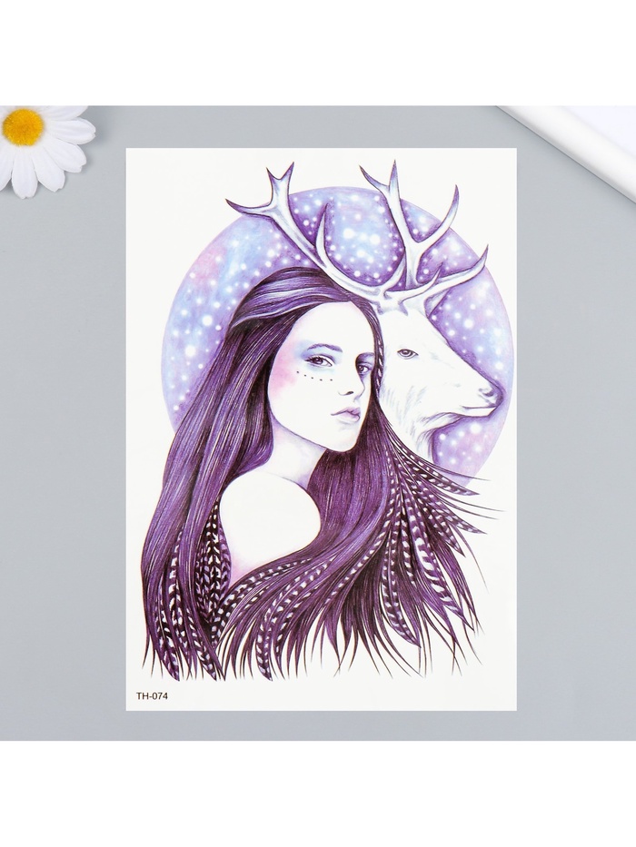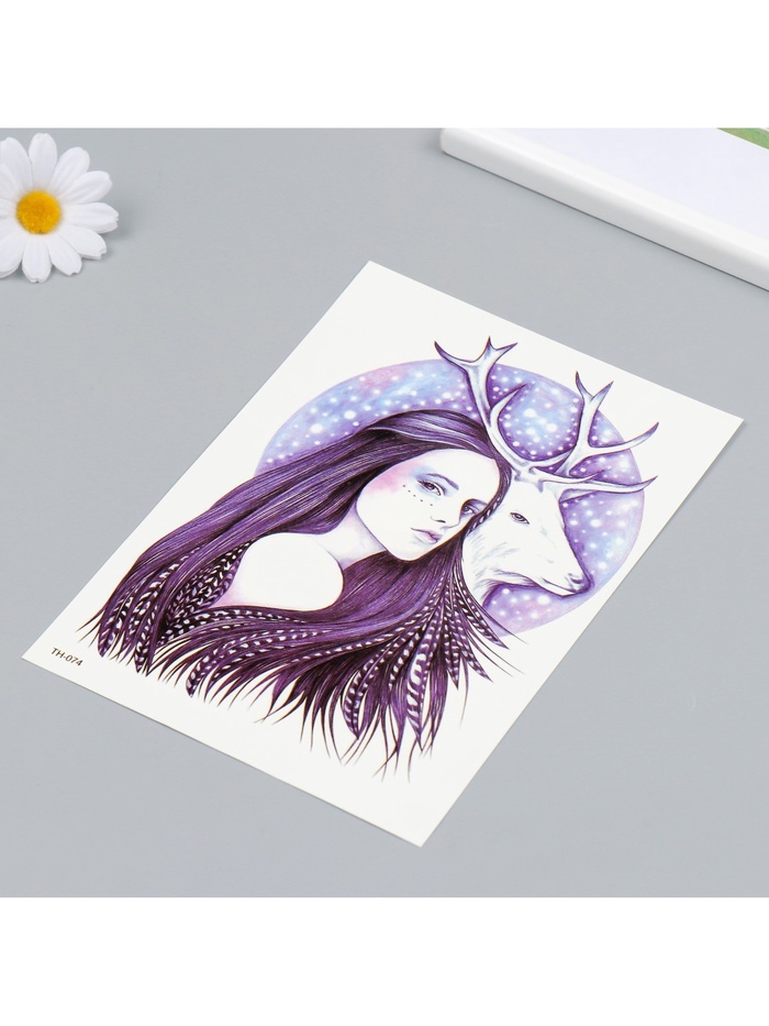 Переводная тату на тело цветная «Девушка и олень», 21×14.8 см — Характеристики