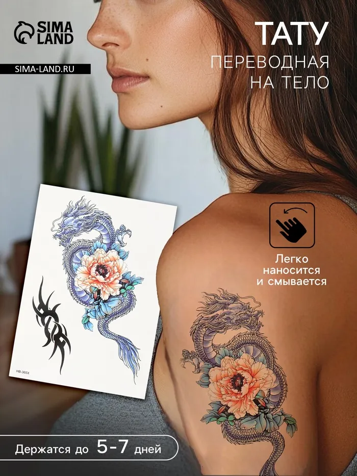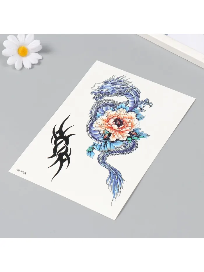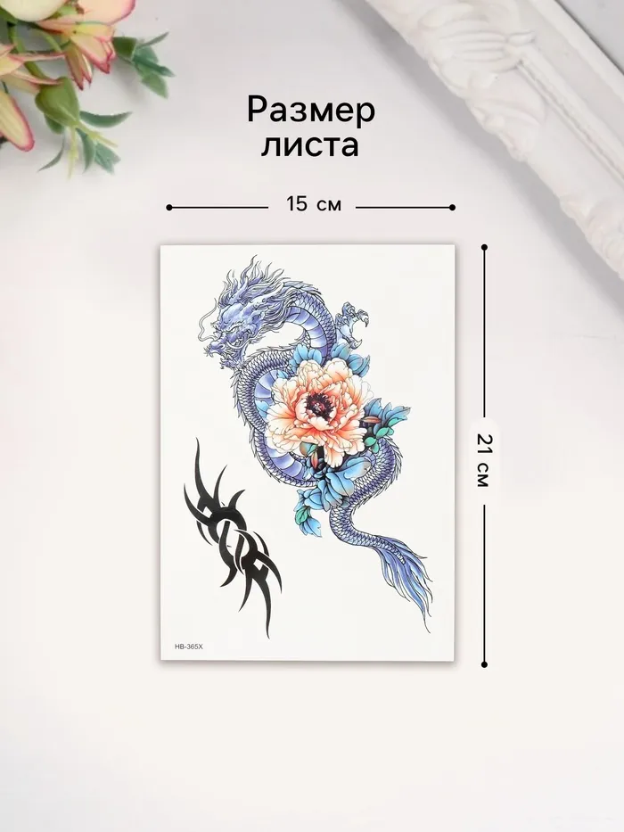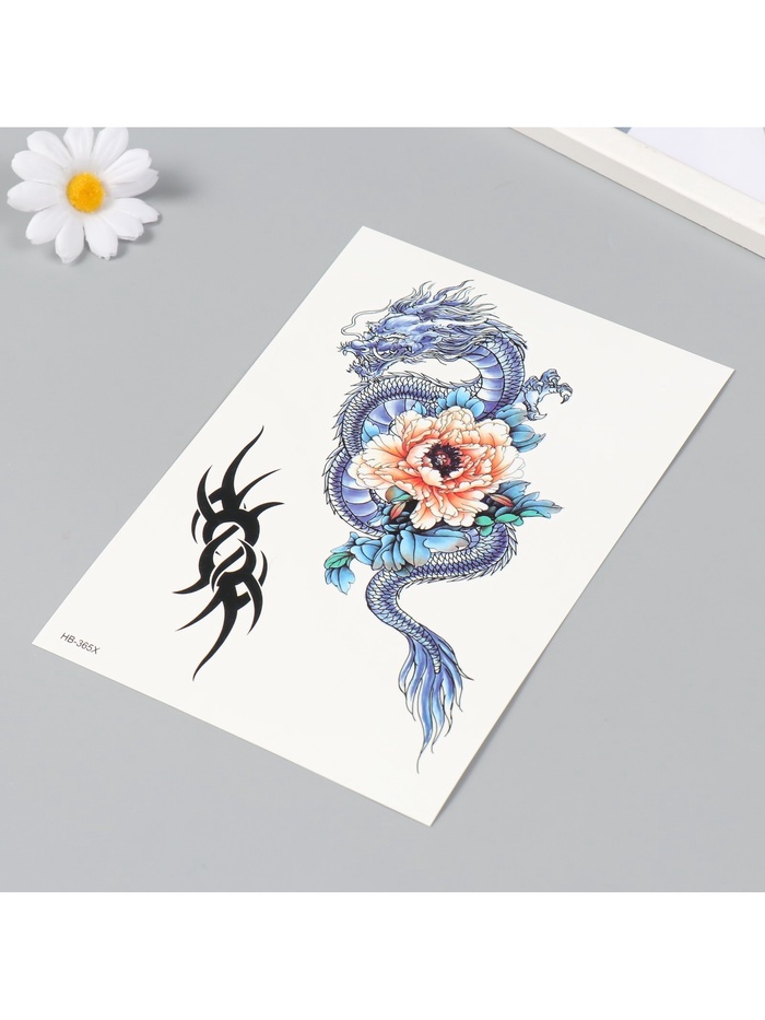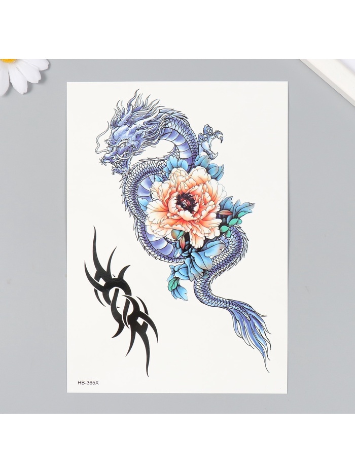 Переводная тату на тело цветная «Дракон с пионом», 14.8×21 см — Характеристики