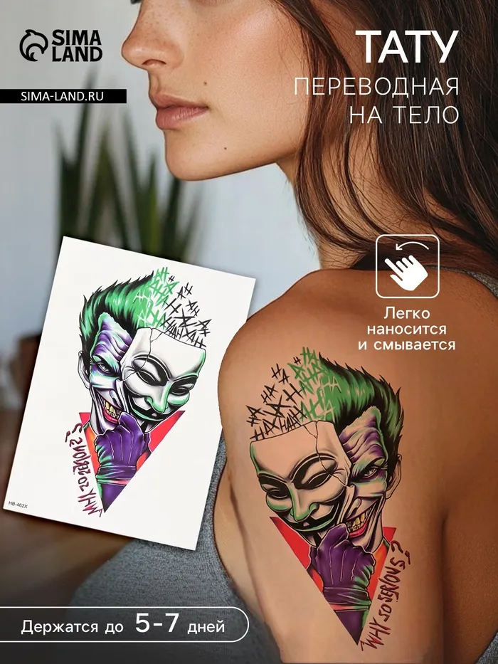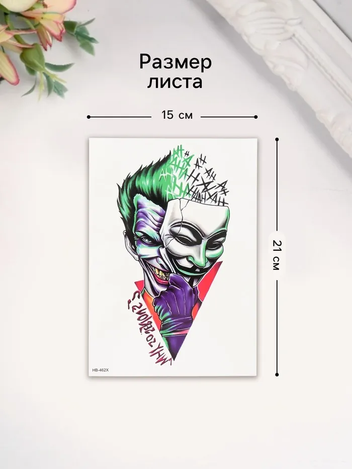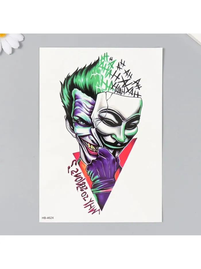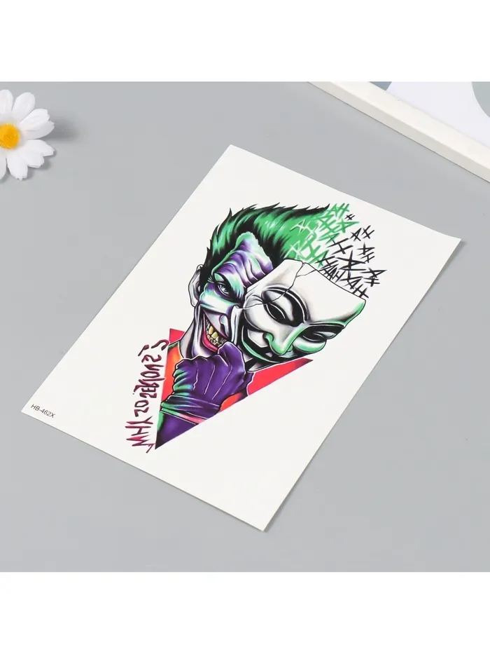 Переводная тату на тело цветная «Джокер: 2 лица», 14.8×21 см — Характеристики