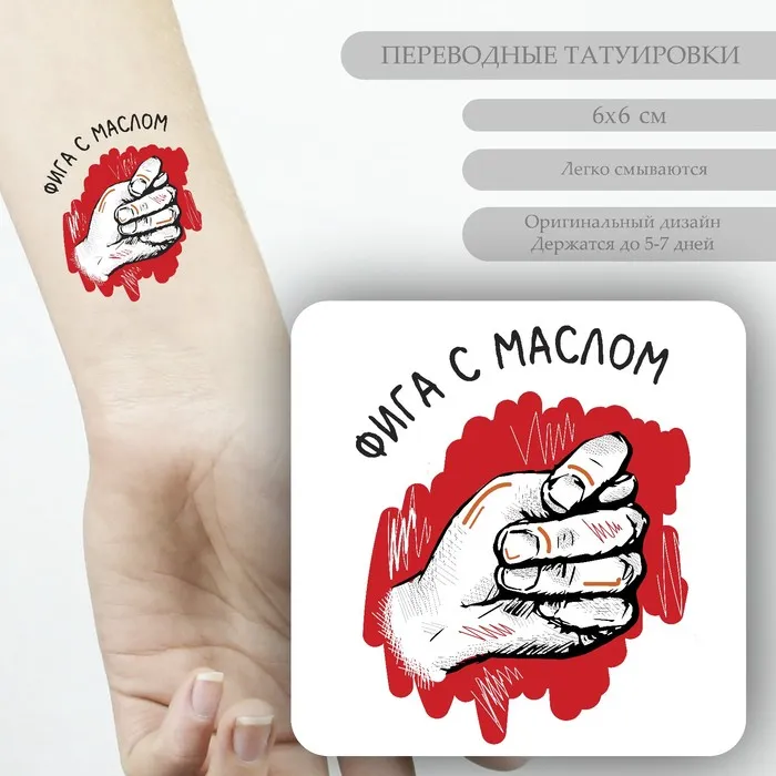 Переводная тату на тело цветная «Фига с маслом», 6×6 см — Характеристики