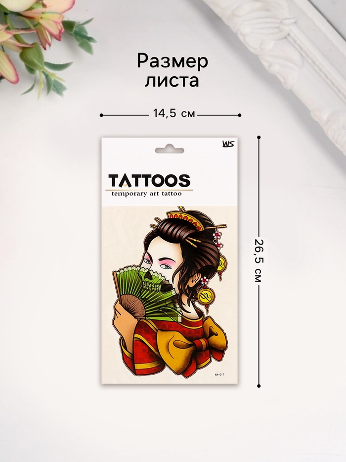 Переводная тату на тело цветная «Гейша вечная», 26.1×14.6 см — Характеристики