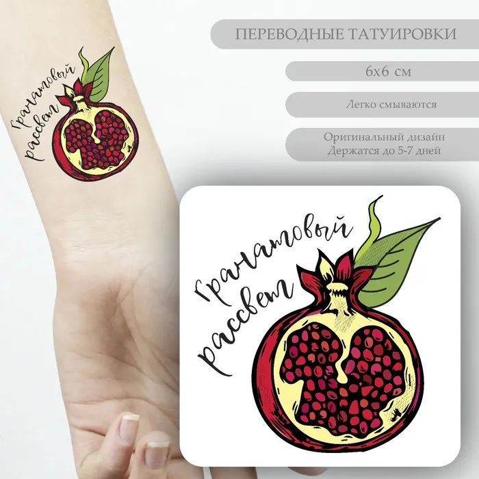 Переводная тату на тело цветная «Гранатовый рассвет», 6×6 см — Характеристики