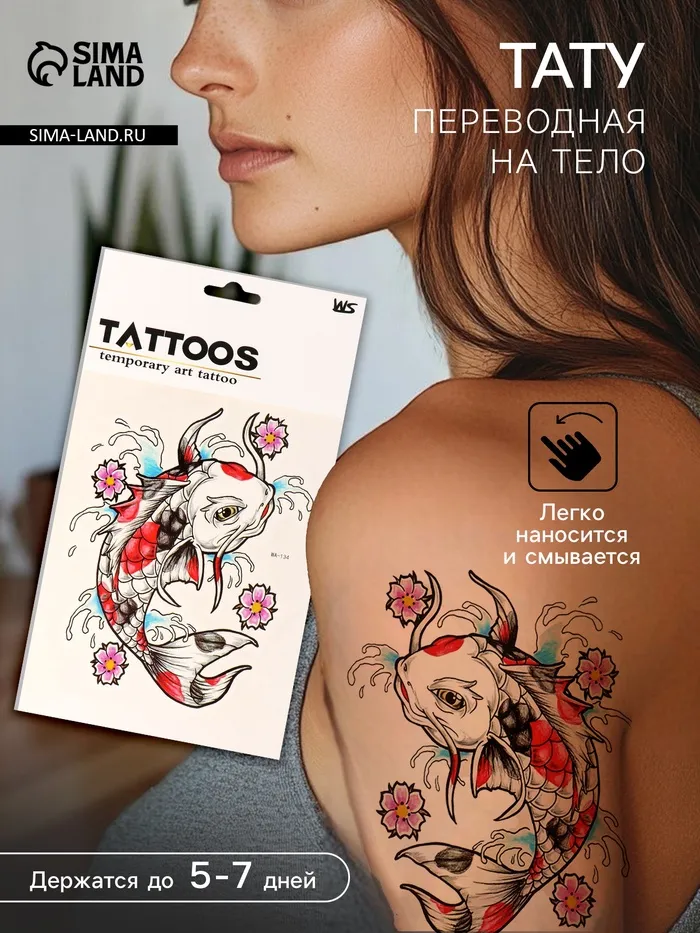 Переводная тату на тело цветная «Карп», 26.1×14.6 см — Характеристики