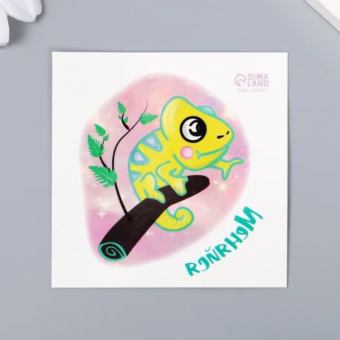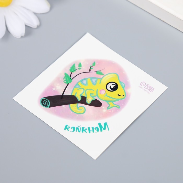 Переводная тату на тело цветная «Хамелеон на ветке: Меняйся», 6×6 см — Характеристики