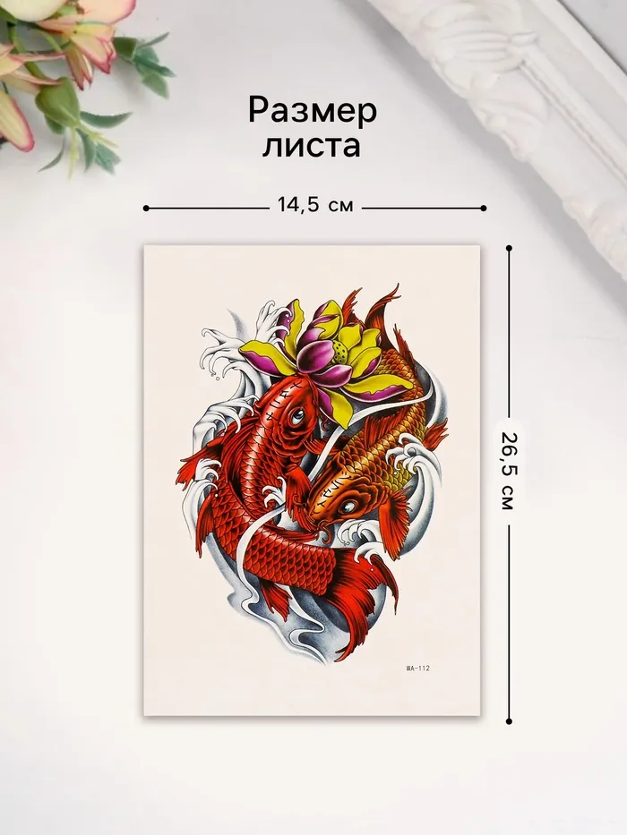 Переводная тату на тело цветная «Красные карпы», 26.1×14.6 см — Характеристики
