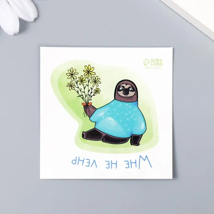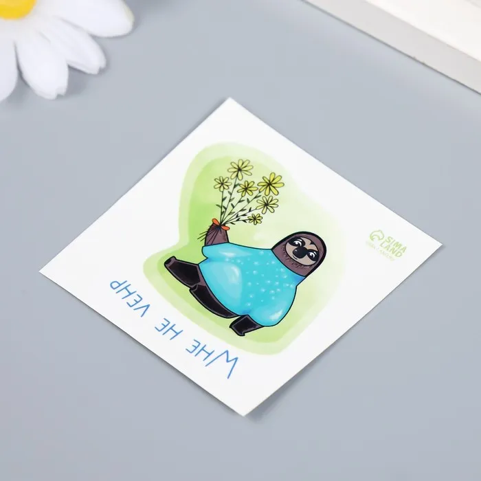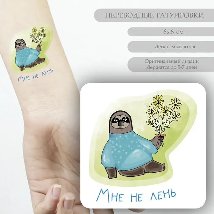 Переводная тату на тело цветная «Ленивец с ромашками: Мне не лень», 6×6 см — Характеристики