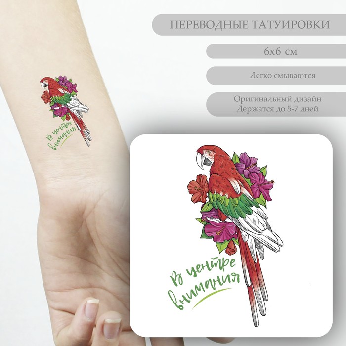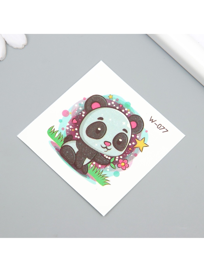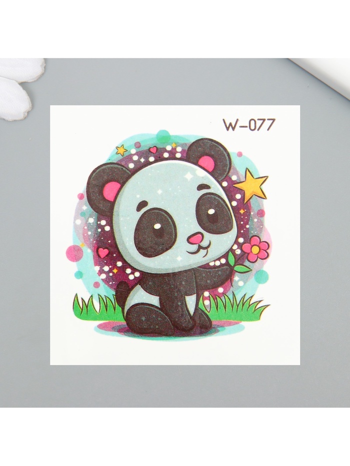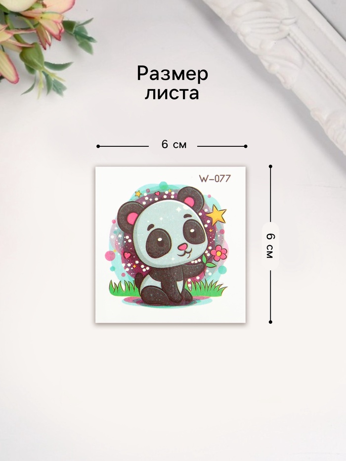 Переводная тату на тело цветная «Малыш панды с цветочком», 6×6 см — Характеристики
