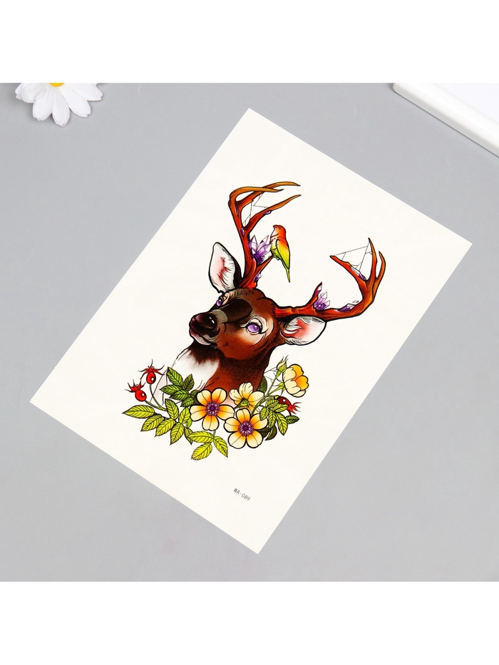 Переводная тату на тело цветная «Олень с птичкой», 26.2×14.5 см — Характеристики