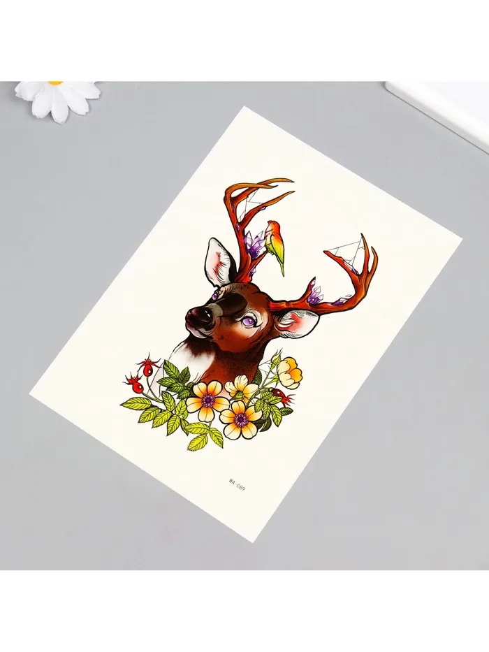 Искусство на коже для юных мечтателей! Цветная переводная татуировка «Олень и птичка» — это уникальное украшение для тела, которое переносит мир животных прямо на кожу.