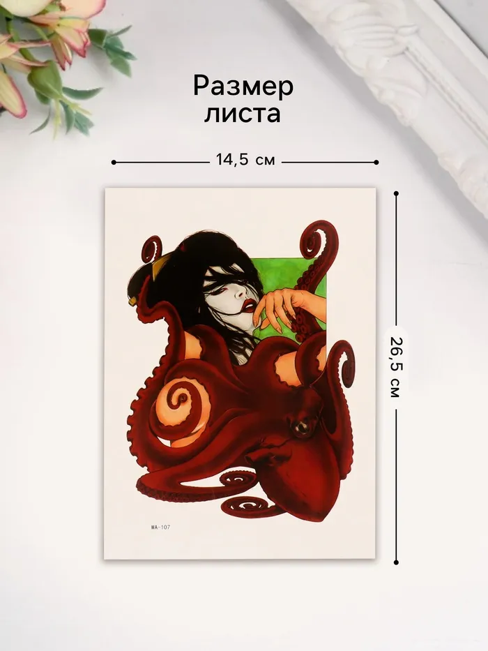 Переводная тату на тело цветная «Осьминог», 26.1×14.6 см — Характеристики