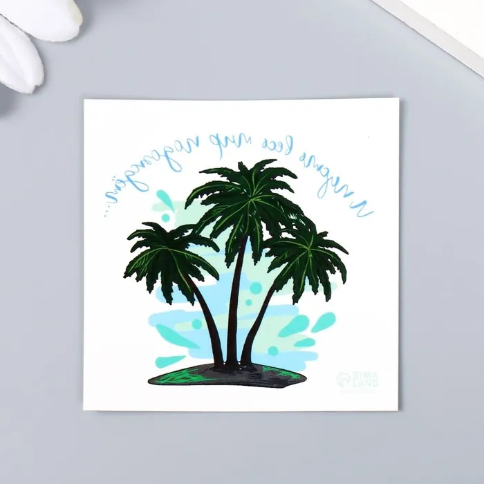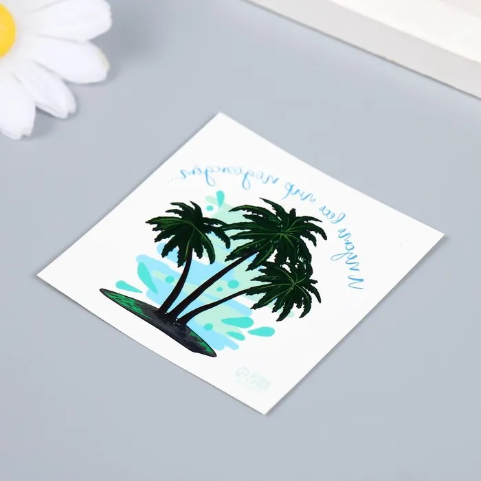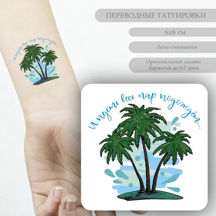Переводная тату на тело цветная «Пальмы: И пусть весь мир подождёт», 6×6 см — Характеристики