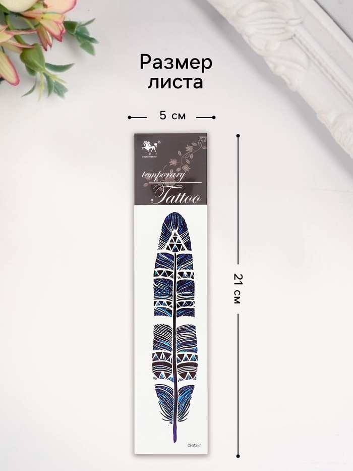 Переводная тату на тело цветная «Перо шамана», 20.8×4.7 см — Характеристики