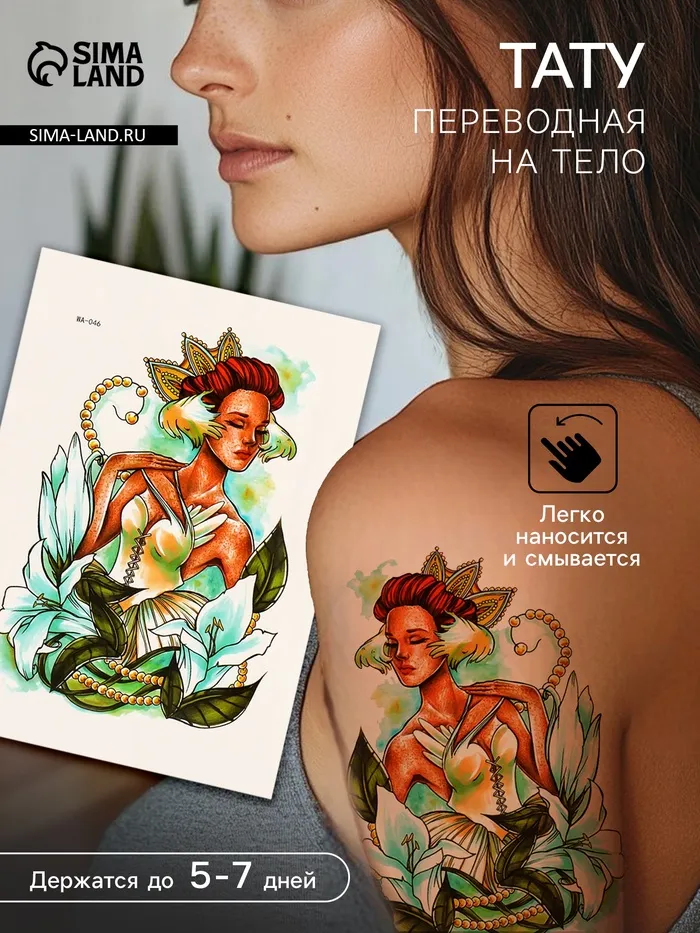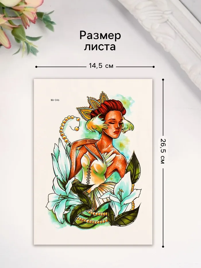 Переводная тату на тело цветная «Принцесса Лилий», 26.1×14.6 см — Характеристики