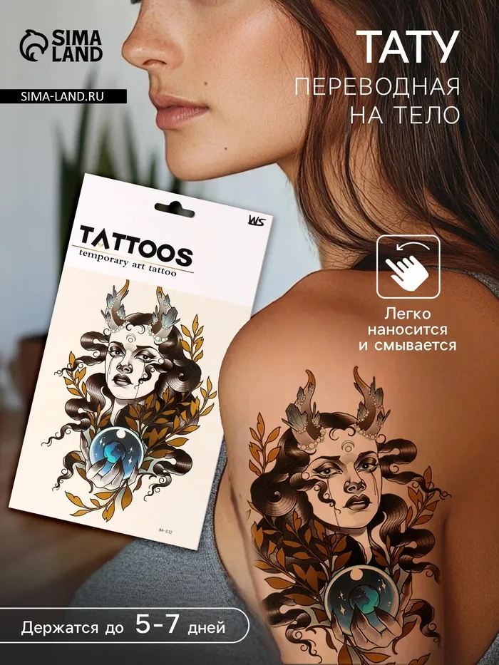 Переводная тату на тело цветная «Признанная Луной», 26.1×14.6 см — Характеристики