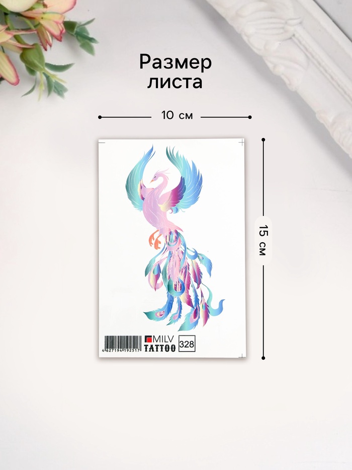 Размер позволяет разместить изображение на руке, плече или лопатке, создавая эффект настоящего художественного произведения. Универсальная тематика делает его уместным как для повседневного образа, так и для особых мероприятий.