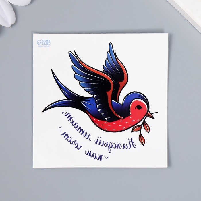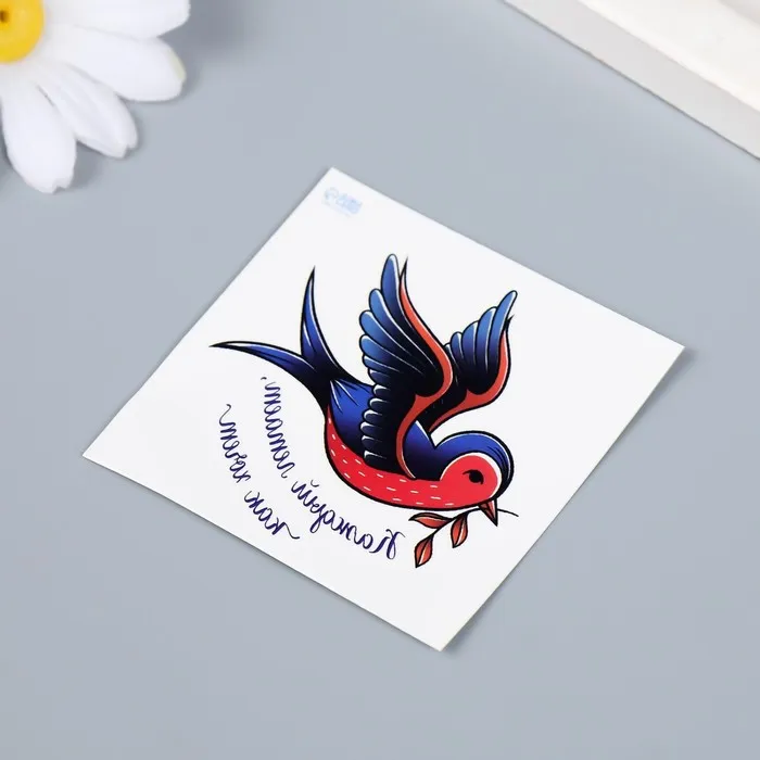 Переводная тату на тело цветная «Птица с веточкой: Каждый летает, как хочет», 6×6 см — Характеристики