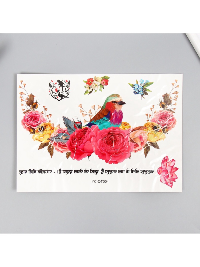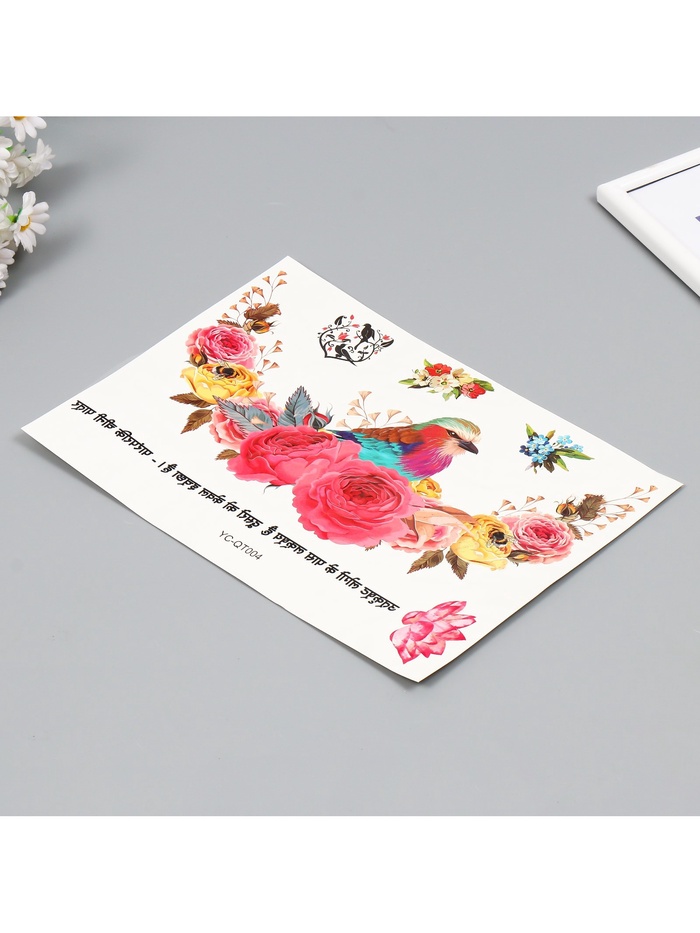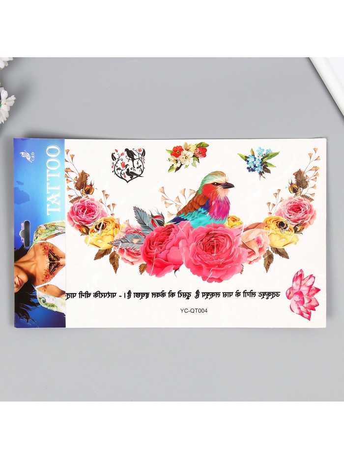 Переводная тату на тело цветная «Птица в розах», 36.5×22 см — Характеристики