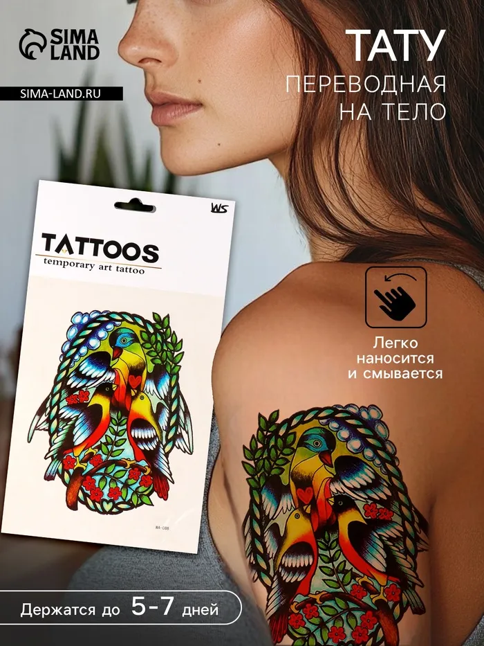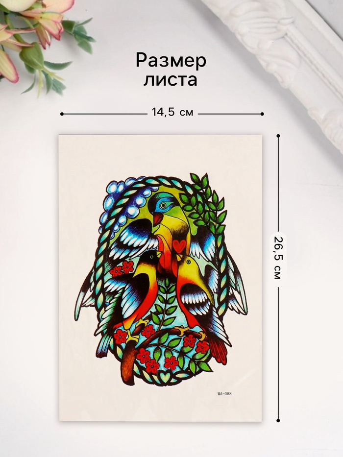 Переводная тату на тело цветная «Птицы арт», 26.1×14.6 см — Характеристики