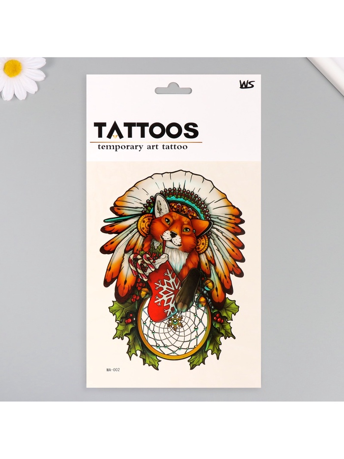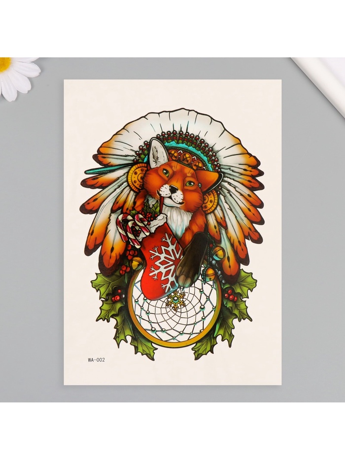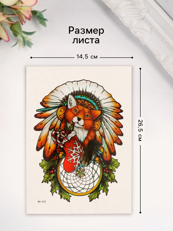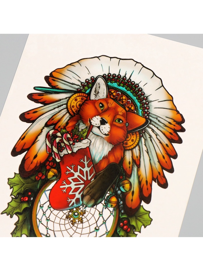 Переводная тату на тело цветная «Рождественская лиса», 26.1×14.6 см — Характеристики