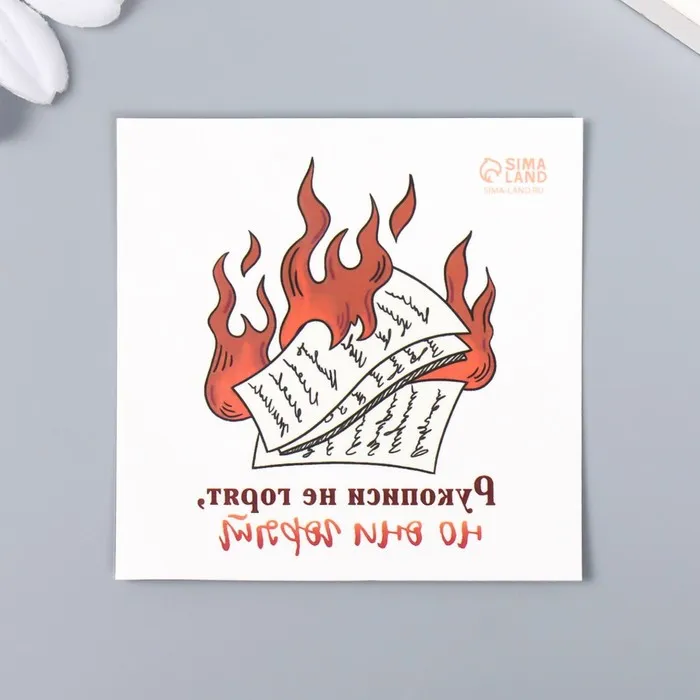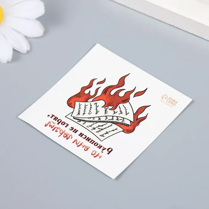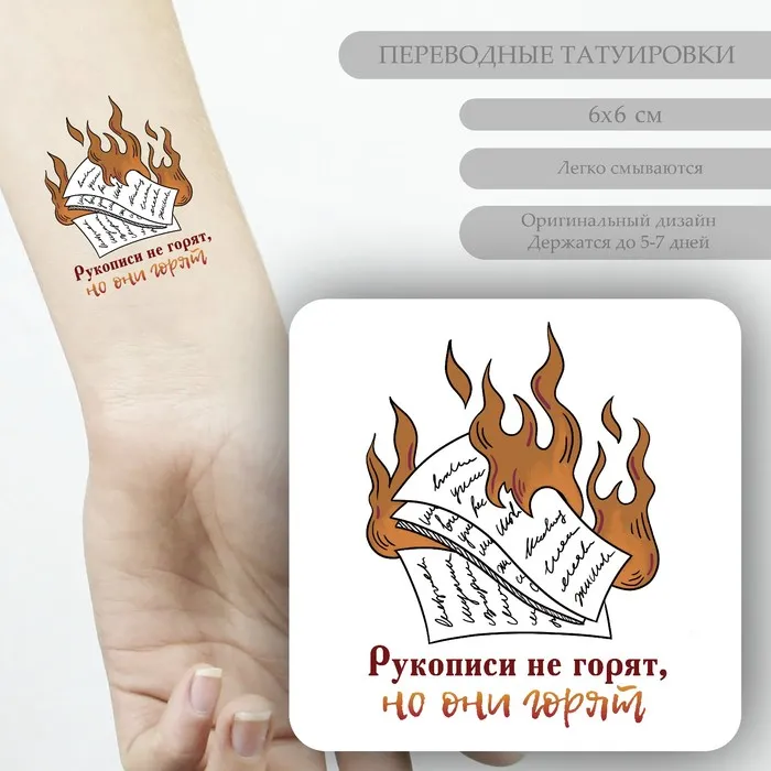 Переводная тату на тело цветная «Рукописи не горят, но они горят», 6×6 см — Характеристики