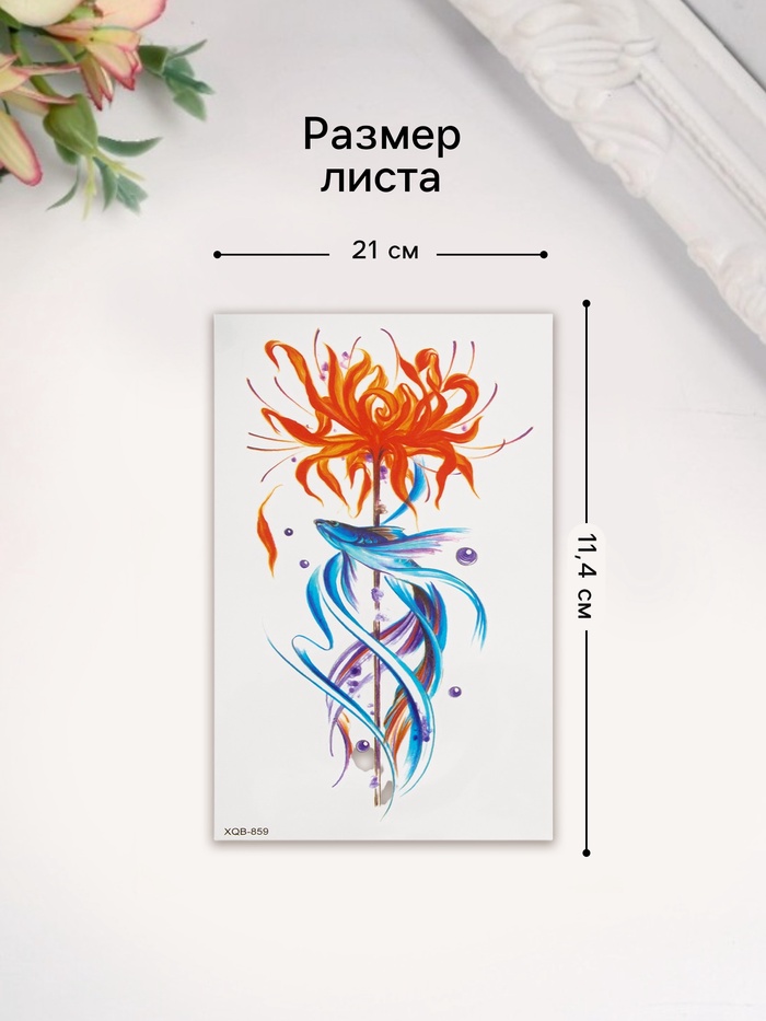Переводная тату на тело цветная «Рыба синяя», 11.4×21 см — Характеристики