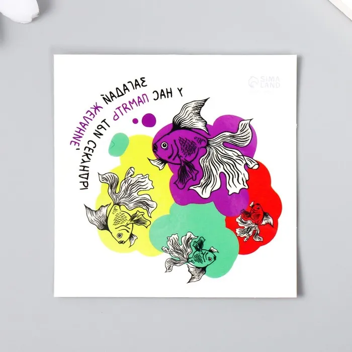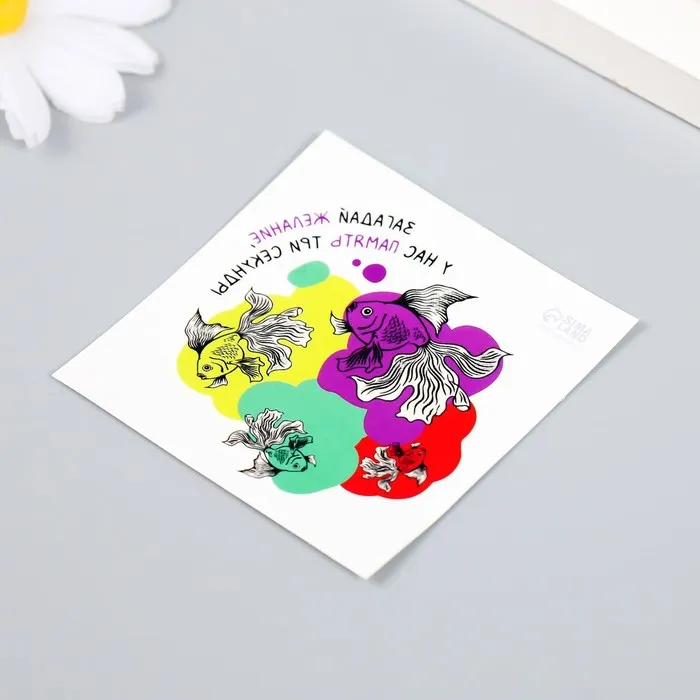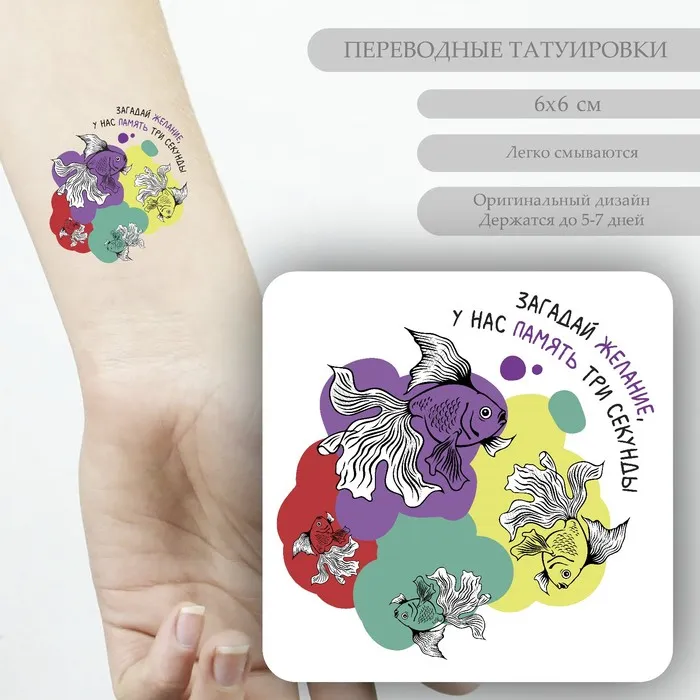 Переводная тату на тело цветная «Рыбки: Загадай желание, у нас память три секунды», 6×6 см — Характеристики