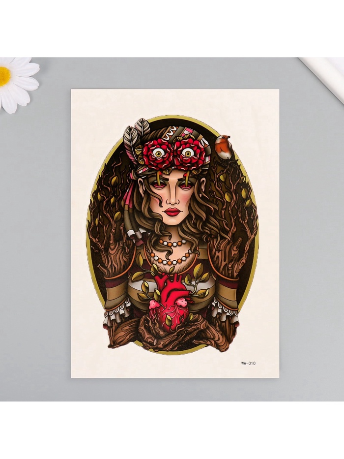 Татуировка легко наносится на кожу благодаря удобной переводной технологии, не требуя специальных навыков. Она универсальна в применении и подходит для различных случаев — от тематических мероприятий до повседневного самовыражения. Благодаря своей универсальной тематике, она станет прекрасным дополнением как для летних фестивалей, так и для фотосессий на природе.