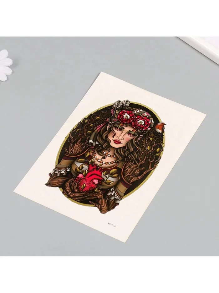 Представляем яркую переводную татуировку, которая станет идеальным способом выразить свою связь с природой и добавить в образ нотку загадочности. Её дизайн вдохновлён образом «Сердца леса» — сочетанием растительного орнамента и человеческих силуэтов, что создаёт гармонию между человеком и природой. Цветное исполнение подчёркивает детали и создаёт ощущение живой энергии, привлекая внимание окружающих. Размер 26.1×14.6 см позволяет создать масштабный рисунок, который станет настоящим акцентом вашего внешнего вида.