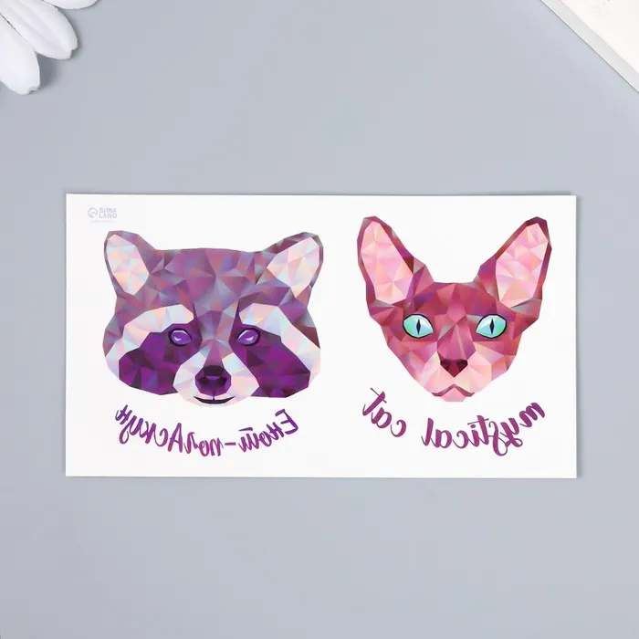 Переводная тату на тело цветная «Сфинкс и енот», двойная, 10.5×6 см — Характеристики