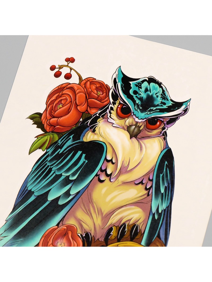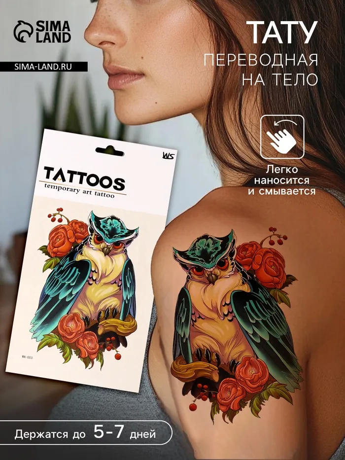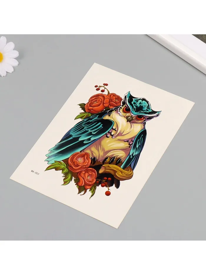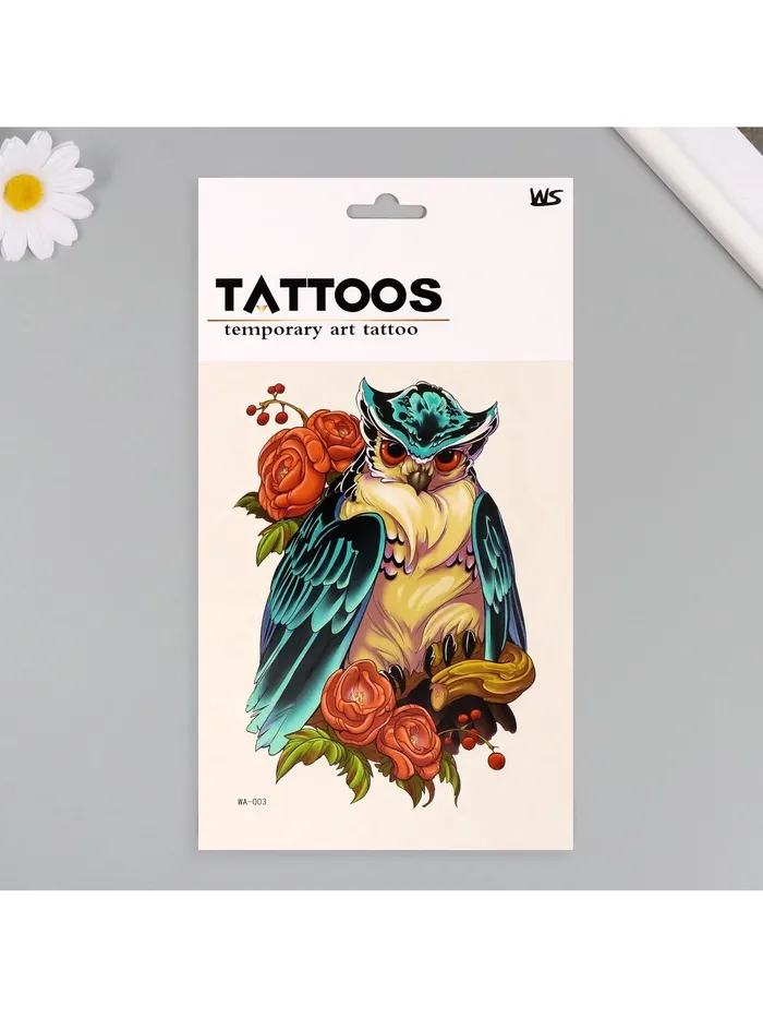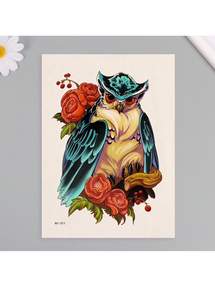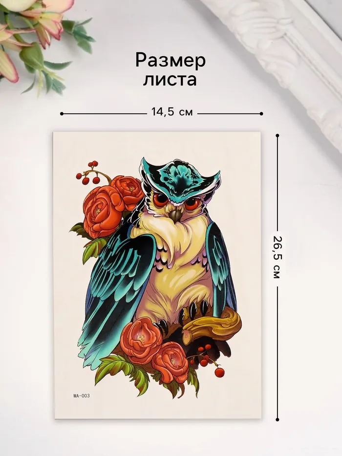 Переводная тату на тело цветная «Сова в пионах», 26.1×14.6 см — Характеристики