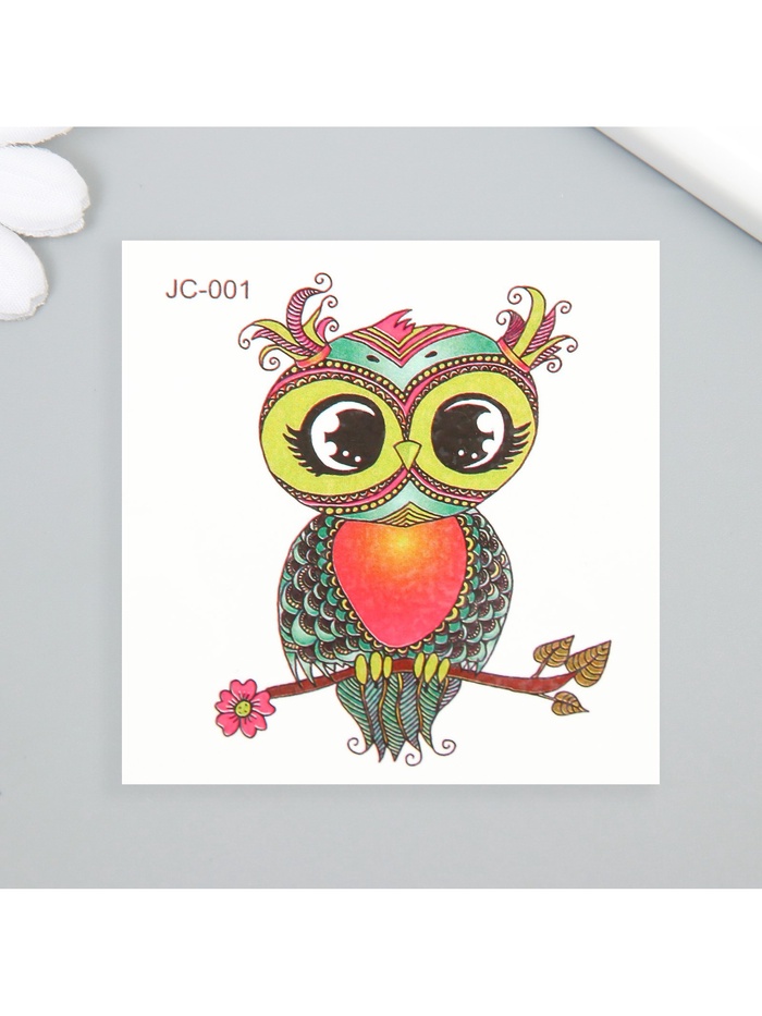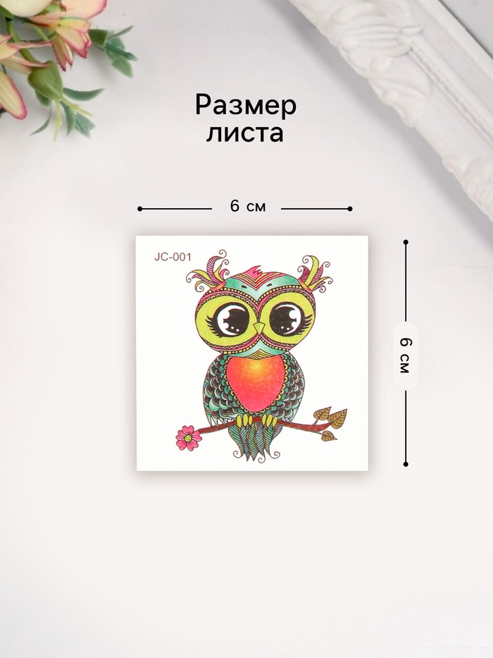 Переводная тату на тело цветная «Совушка на ветке с цветком», 6×6 см — Характеристики