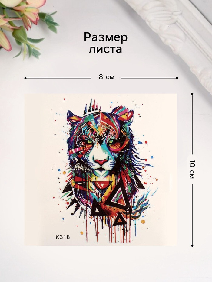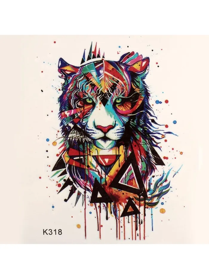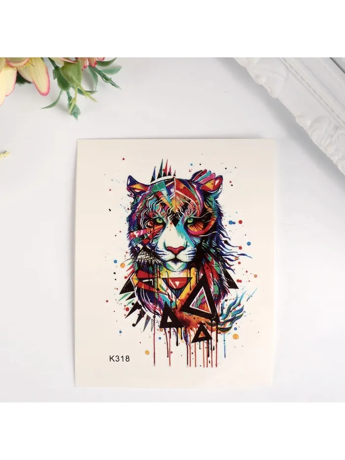 Разноцветное исполнение рисунка придаёт ему живость и выразительность, а детализированное изображение тигра создаёт ощущение движения и энергии. Будь то повседневный стиль или особое событие, эта татуировка органично дополнит ваш образ. Универсальное место приклеивания позволяет разместить её на любом участке тела, делая её идеальным выбором для тех, кто ценит свободу самовыражения.