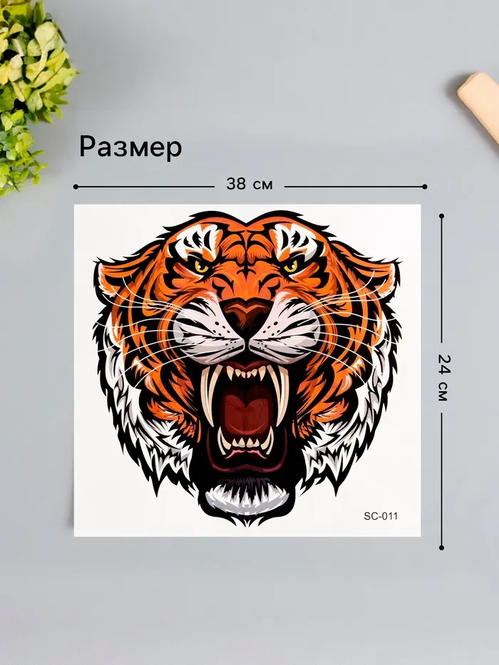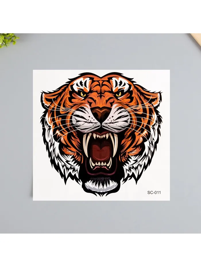 Переводная тату на тело цветная «Тигр с клыками», 38×24 см — Характеристики