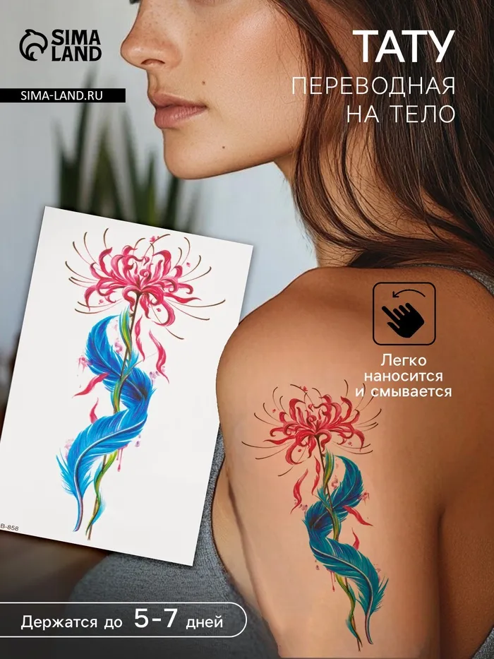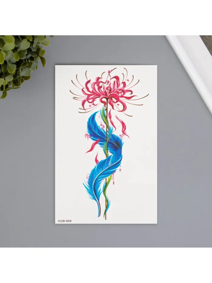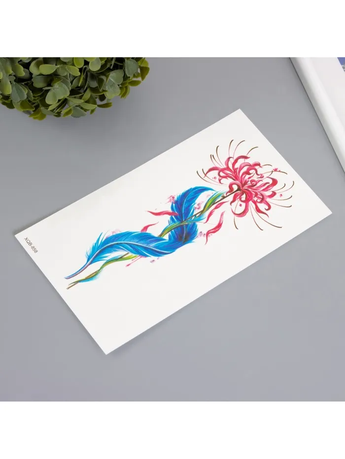 Переводная тату на тело цветная «Цветок с пером», 11.4×21 см — Характеристики