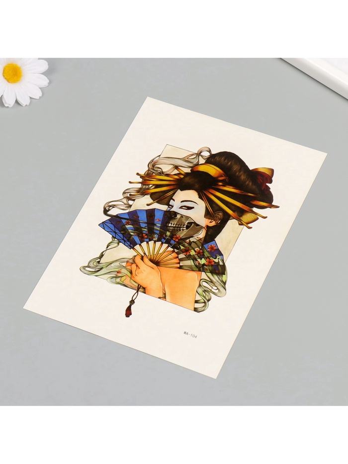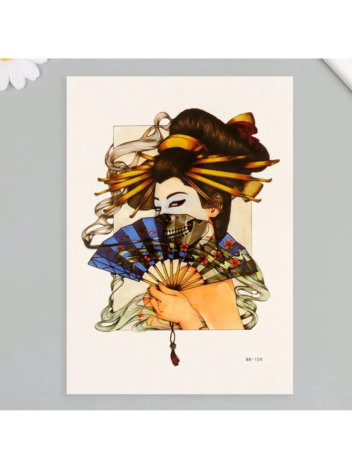 Откройте для себя искусство временного боди-арта с этим завораживающим цветным изображением, где каждая деталь продумана до мелочей. Эффектный дизайн сочетает в себе глубину смысла и визуальную притягательность, создавая на коже настоящее произведение искусства.