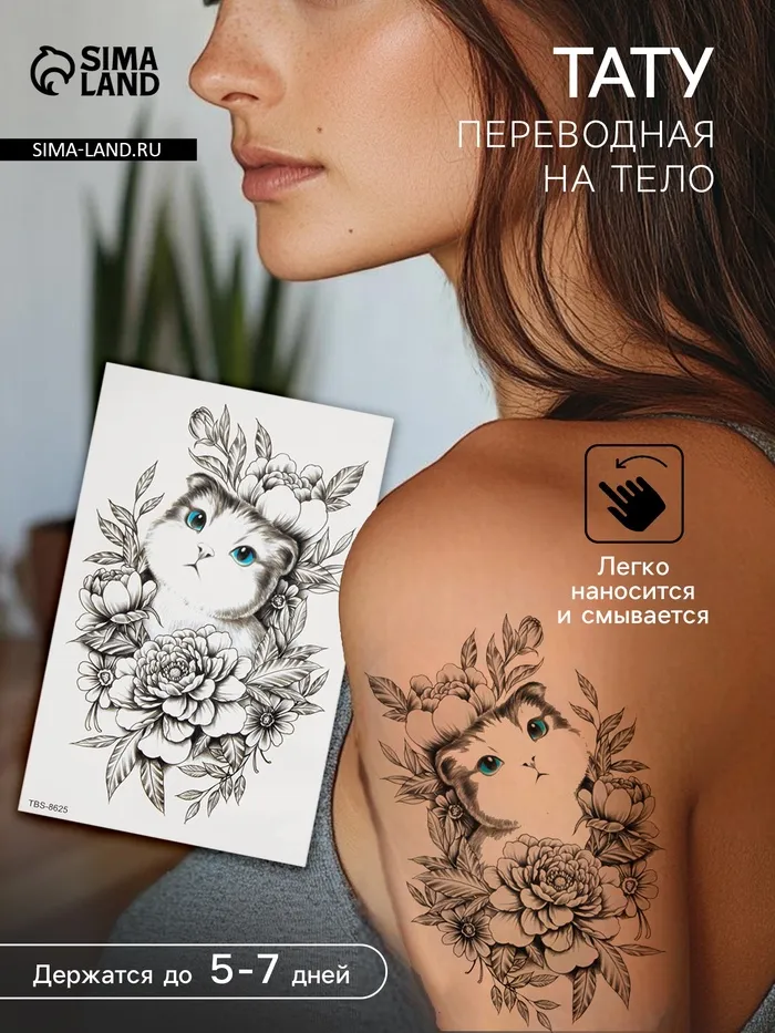 Изготовленная из высококачественного пластика, эта татуировка отличается долговечностью и насыщенными цветами, которые не тускнеют со временем. Легкость в нанесении и удалении позволяет вам легко менять образы в зависимости от настроения и стиля. Яркий и игривый дизайн с изображением котика станет настоящим украшением вашего образа.