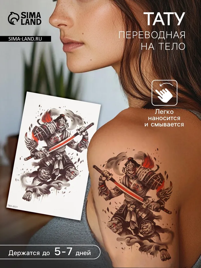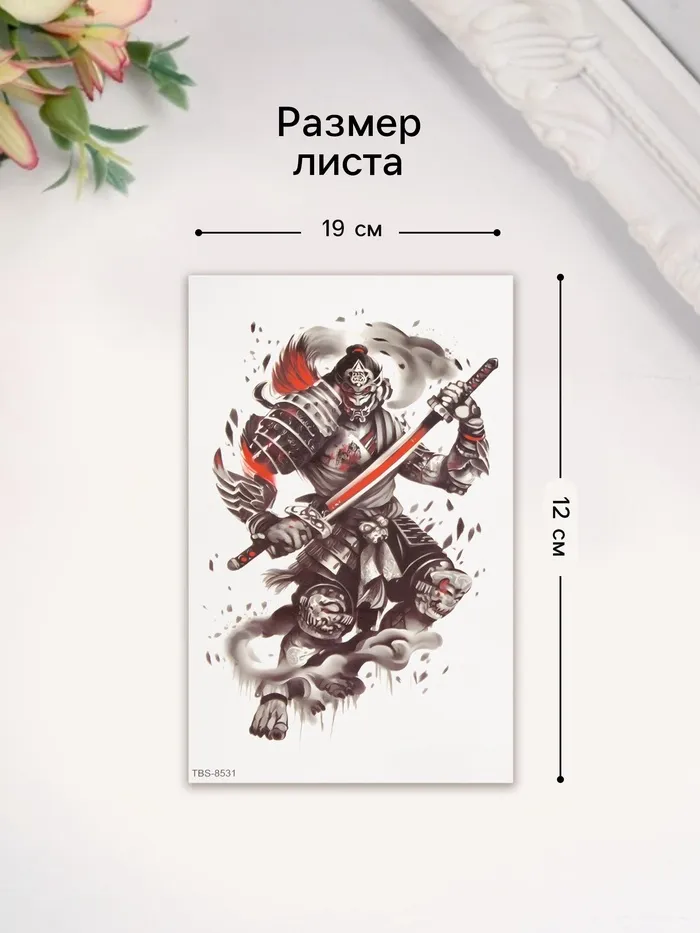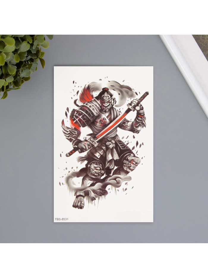 Переводная тату на тело цветная «Воин тумана», 12×19 см — Характеристики