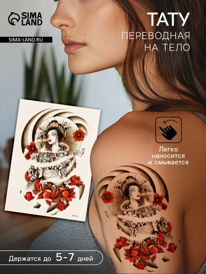Переводная тату на тело цветная «Женщина Сакура», 26.1×14.6 см — Характеристики