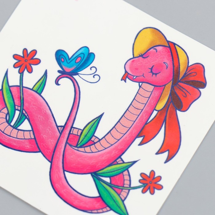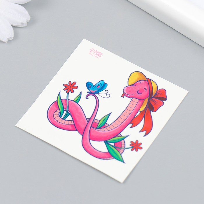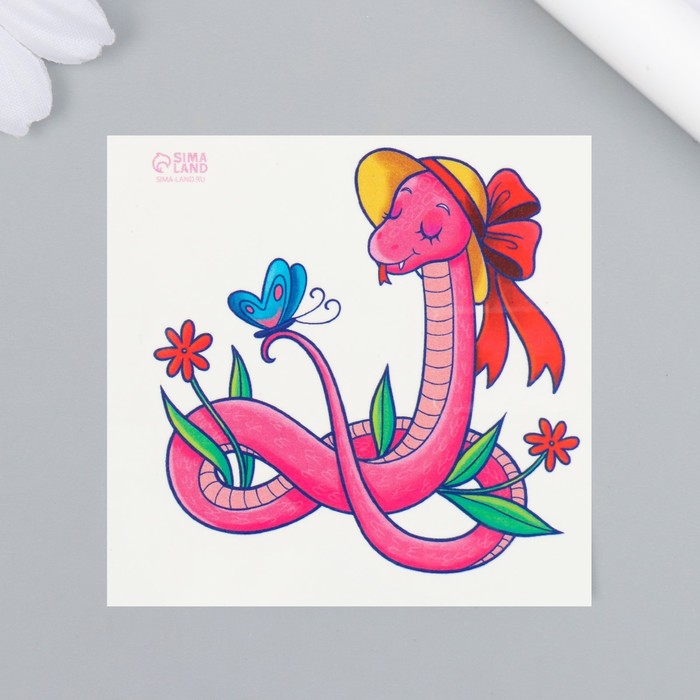 Переводная тату на тело цветная «Змейка в шляпке на полянке», 6×6 см — Характеристики