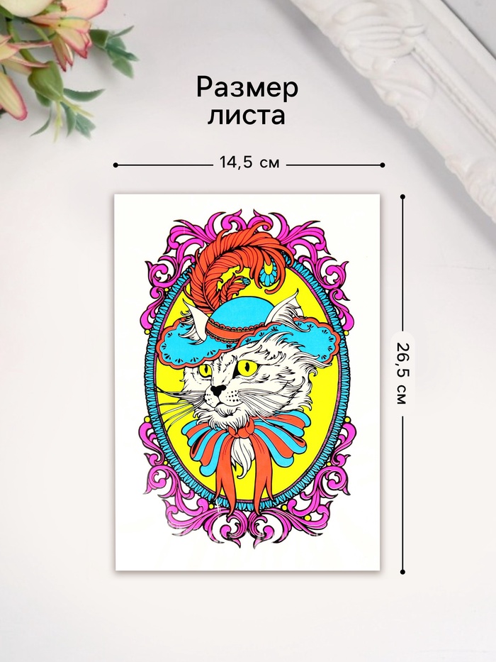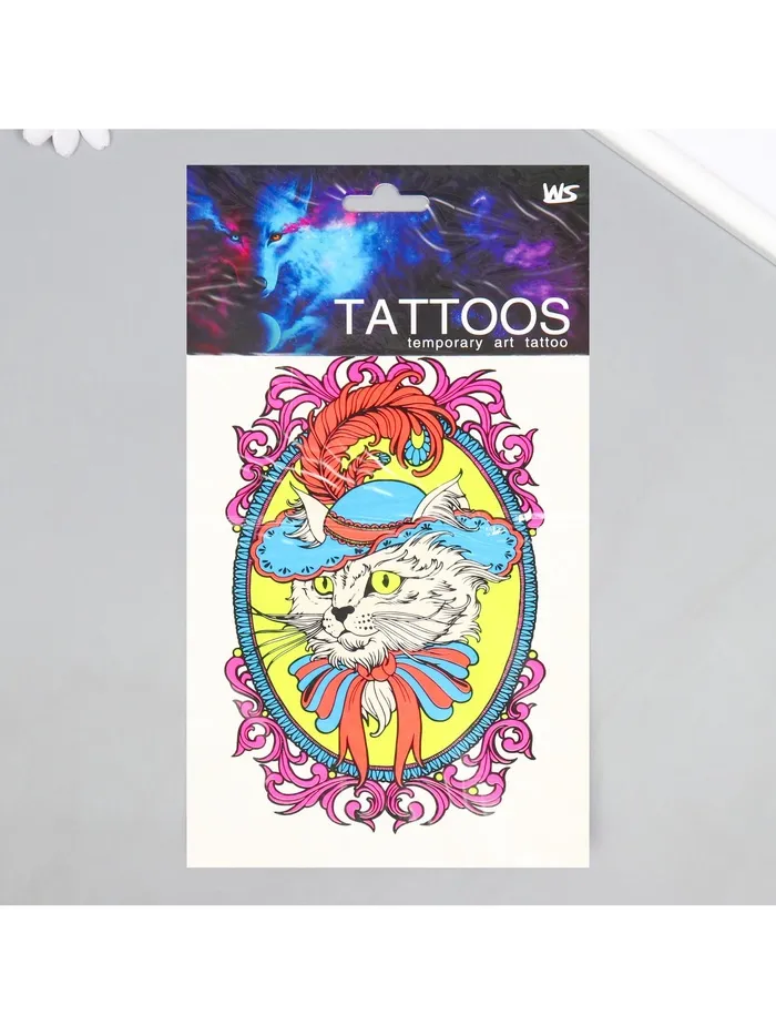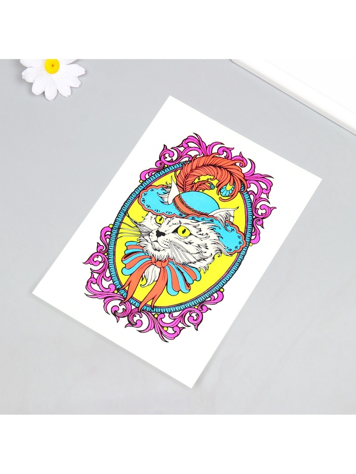 Переводная тату на тело цветные «Кот в шляпе», неон, 26×14.5 см — Характеристики