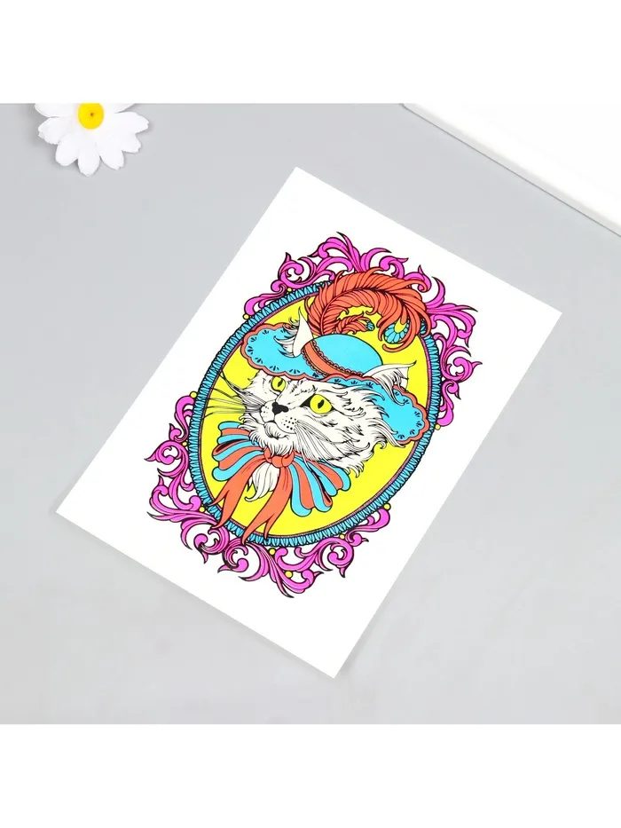 Выразите себя с яркостью и игрой красок! Неоновая переводная татуировка «Кот в шляпе» с красочными изображениями придаст вашему образу уникальность и стиль. Необычные аксессуары помогут вам выделиться из толпы и создадут позитивное настроение.