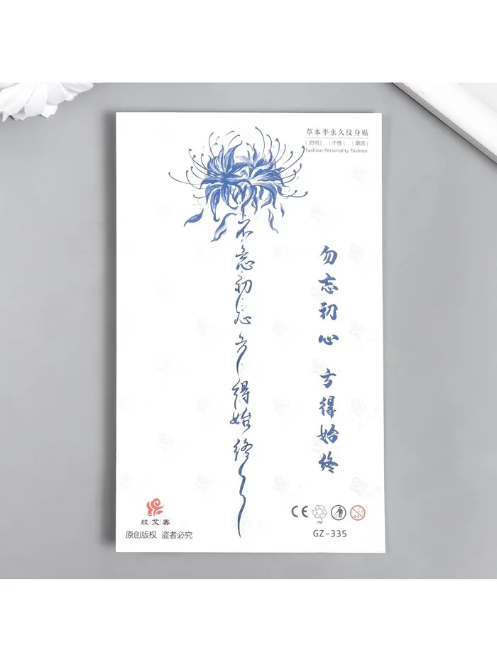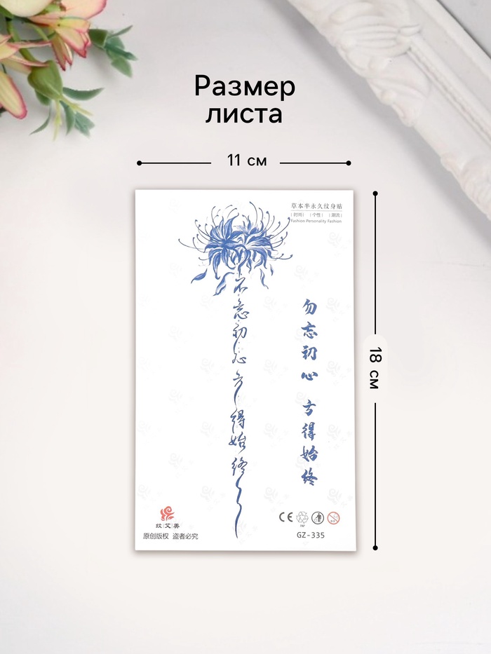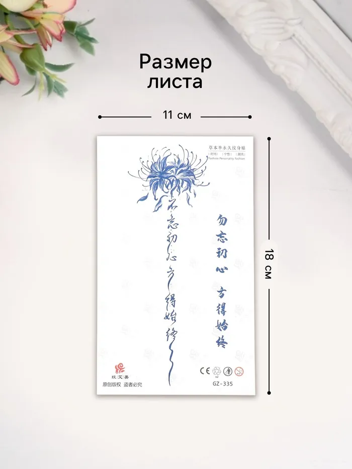 Переводная тату на тело «Цветок и иероглифы», 18×11 см — Характеристики