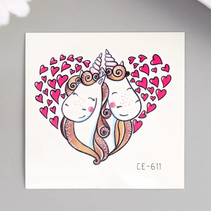 Позвольте себе и своим близким немного волшебства с этими очаровательными временными татуировками. Яркие единороги с сердечками создадут атмосферу сказки и нежности, подчеркнув индивидуальность и подняв настроение в любой день.