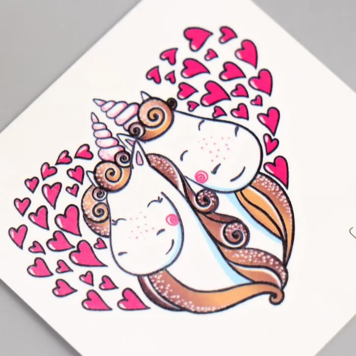 Переводная тату цветная «Единорожки с сердечками», временная татуировка, 6×6 см — Характеристики