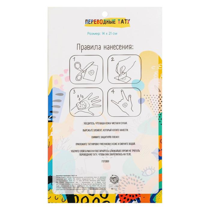 Переводные тату «Часы для мальчиков», 14 х 21 см — Характеристики