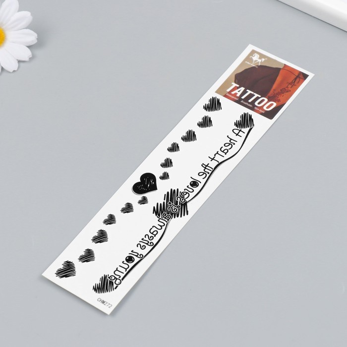 Переводные тату чёрные «Браслеты из сердец», временные татуировки, 20.8×4.7 см — Характеристики