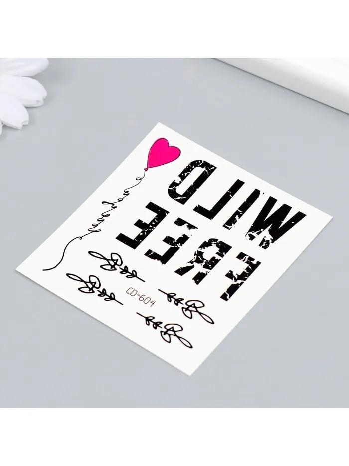 Выразите свою индивидуальность с этими стильными временными татуировками в дерзком черном исполнении. Графичная надпись «Wild free» станет смелым акцентом вашего образа, подчеркивая независимый характер и любовь к свободе.
